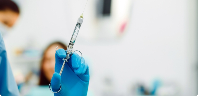 治療中は、痛みを抑えるために局所麻酔を行います。その後、治療する歯以外をラバーダムという薄いゴムのシートで覆います。